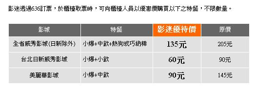 一張票最多可以省50元,加購爆米花最多可以省70元喔